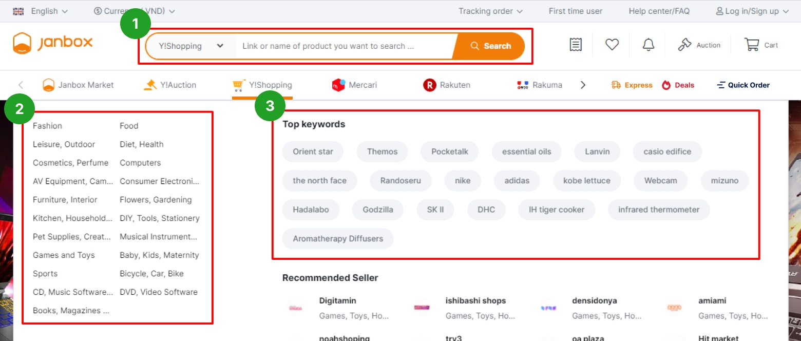 There are 4 ways to search for your favorite items: Option 1: Enter your item’s name or URL on the Janbox search bar. Option 2: Search item by category. Option 3: Search items by top keywords. Option 4: Search items by Janbox Extension --> Get more information about Janbox Extension